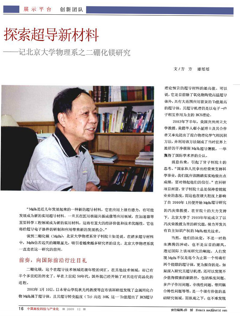 (1) 教學(xué)科研 相互促進(jìn)——建設(shè)中的MgB2超導(dǎo)材料研究平臺(tái).