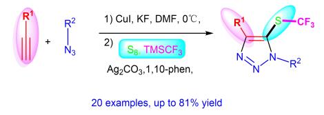 7. Zhang, Lin-Lin; Li, Meng-Tian; Shen, Liang-Liang; Wu, Qin-Pei*, Efficient Synthesis of 5-Trifluoromethylthio-1,2,3-Triazoles: One-Pot Multicomponent Reaction from Elemental Sulfur and TMSCF3, Synthesis,2020, 52(2): 304-310. DOI:10.1055/s-0039-1690716